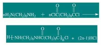 如上圖反應(yīng)方程式所示:PA610通過己二胺 (來自化石原料) 與癸二酰氯縮聚而成;其中,癸二酰氯由癸二酸得到,己二胺由己二腈得到;